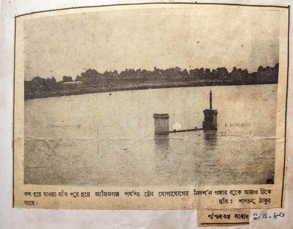 প্রয়াত সাংবাদিক শান্তনু ঠাকুর ‘ভারতকথা’ সংবাদপত্রে ১৯৮৯ সালে এই নশিপুর সেতু নিয়ে একটি সংবাদ প্রকাশ করেছিলেন। “শিয়ালদা-লালগোলা সেকশনের দু কিমি রাস্তার পুনঃপ্রবর্তন করলে উঃভারত, দঃভারতের যোগাযোগ স্থাপিত হবে” এই শিরোনামে (অপরিবর্তিত) লেখা হয়েছিল সেই সংবাদ। ওই সংবাদ সূত্রে জানা যায়, ১৯৪৭ সালে এই রেলপথ চালু ছিল। অবিভক্ত ভারতের বর্তমানে বাংলাদেশ থেকে মেঘালয় ও অসমে হাজার হাজার টন কয়লা সরবরাহ হত এই পথ দিয়ে। স্বাধীনতার পর কোনও অজ্ঞাত কারণে রেলপথটি বন্ধ হয়ে যায়। তার সাক্ষী ভাগীরথীর বুকে আজও দাঁড়িয়ে থাকা সেতুর দুই স্তম্ভ। সেদিক থেকে স্বাধীনতার ৭৭ বছর পর সেই সেতু দিয়ে রেল গড়াল ২০২৪ সালে।