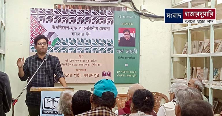 সেই ঘাটতি মেটাতে উদ্যোগ নিল “পরের পৃষ্ঠা”, গত ১৫ ই নভেম্বর, শনিবার, বহরমপুর শহরে। বই কেন্দ্রিক সিরিয়াস আলোচনার ধারাবাহিক আয়োজনে ‘পরের পৃষ্ঠা’ ইতিমধ্যেই শহরে সাড়া জাগিয়েছে। সেই ধারাতেই সংযোজিত হল সর্বশেষ আলোচনা – বিশিষ্ট সাংবাদিক অর্ক ভাদুড়ীর কথনে হায়দার ঈদের ‘উপনিবেশ -মুক্ত প্যলেস্তানীয় চেতনা’ নামক বইটি । এই বইয়ের লেখক অধ্যাপক, তাত্ত্বিক, সংগঠক ,প্যালেস্তাইনের মুক্তিযোদ্ধা।