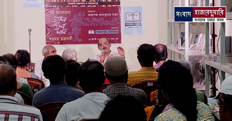 ‘বই ধরো, বই পড়ো’ নতুন শ্লোগানে বই ধরলো সবাই ঠিকই, পড়ল না তাদের অনেকেই। বই চলে গেল মুষ্টিমেয় পাঠকের কাছে। দাম চলে গেল সাধারণের নাগালের বাইরে। বই ছাপানো নিয়ে প্রশ্ন উঠল। ছাপা বইয়ের মান নিয়েও প্রশ্ন উঠল। লেখকের মান কমলো। নামও হারালো। লেখকের বইয়ের বদলে ব্যক্তি লেখক চলে এলেন আলোচনায়। বইয়ের বাজার ফুরিয়ে এল। ক্ষয়িষ্ণু হয়েও তবু বই বেঁচে আছে। ভরসা এটাই। সেই ভরসায় বাতাস দিল ‘পরের পৃষ্ঠা’। মধ্যবয়সী জনা পাঁচেক মাস্টারমশাই এক ফালি ‘বই ঠেক’-এ টেনে নিয়ে গেলেন জনা পঞ্চাশেক বহরমপুরবাসীকে। নিম্নচাপের মেঘ সরে যেতেই ভ্যাপসা গরমে ভিজে যাচ্ছে শার্ট, শাড়ি। তবু মননশীল পাঠক শুনে যাচ্ছেন ঘরের ছেলে অধ্যাপক মনন কুমার মন্ডলের বলে যাওয়া কথাগুলো।
