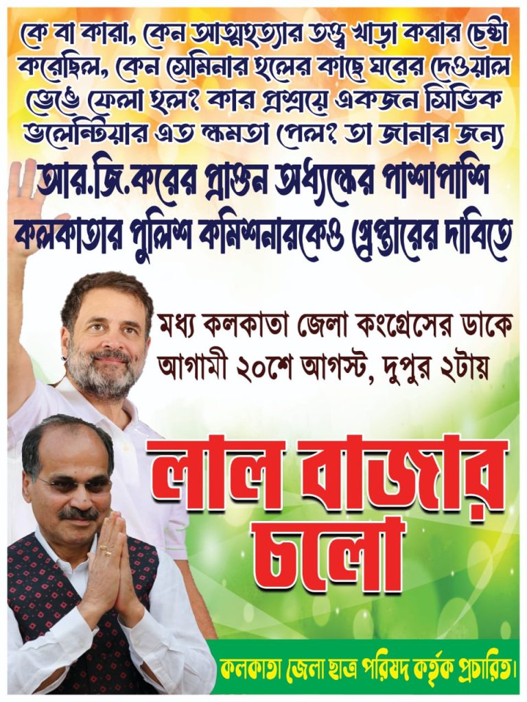 প্রসঙ্গত, সুখেন্দুর নগরপাল ও প্রাক্তন অধ্যক্ষের গ্রেফতারের দাবিকে সামনে রেখে আগামীকাল লালবাজার অভিযানের ডাক দিয়েছে মধ্য কলকাতা জেলা কংগ্রেস। রাজ্যে ঘটে যাওয়া এক নারকীয় হত্যাকান্ডের প্রতিবাদে রাজনীতির সব রঙ মিশে গিয়েছে পথে-মাঠে। সেই সঙ্গে ঘোলা জলে মাছ ধরতেও নেমেছেন অনেকে। এমনটাই দাবি তৃণমূলের। তবে শুধু কংগ্রেস নয় রবিবার সিপিএম রাজ্য সম্পাদক মহঃ সেলিমও সুখেন্দুর দাবির পক্ষে সওয়াল করেছেন। তাঁর দাবিকে সমর্থন জানিয়েছে রাজ্য বিজেপিও।