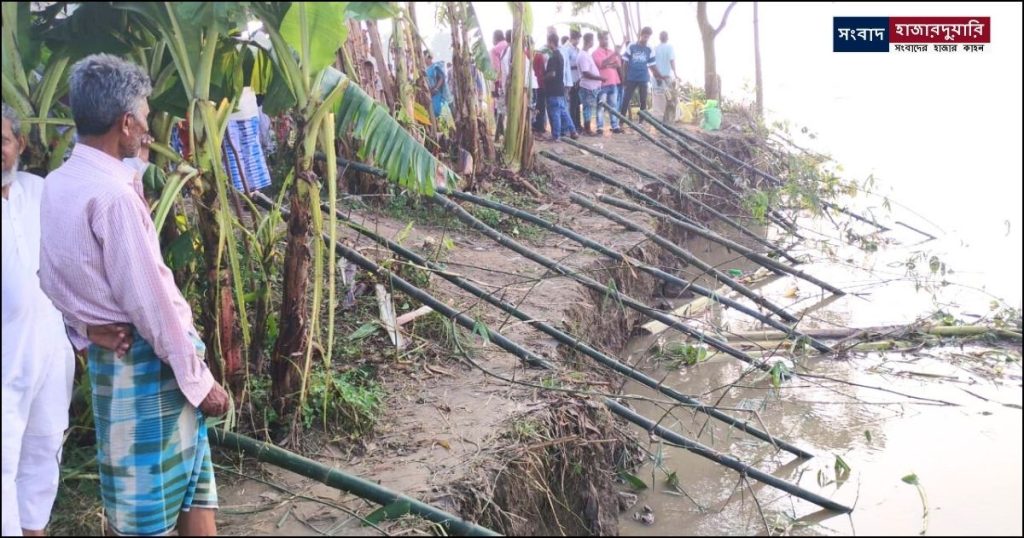 আরও এক বাসিন্দা আব্দুল জাহির বলেন “বালির বস্তা পাঠিয়ে এই কাজ হয় না। বাংলাদেশ যেমন ঢালাই করে পাকা কাজ করেছে সেইরকম কাজ করলে পার এভাবে ভাঙবে না।” কাকে বলেছেন সে কথা? জাহির বলেন, ” কাকে বলব? নেতারা আসছে দেখছে ওরাই টাকা খাচ্ছে।” বিধায়ক অবশ্য বলছেন, “দরপত্র ডেকে ইতিমধ্যেএলাকায় ভাঙন রোধের কাজ শুরু হয়ে গিয়েছে।” ভাঙা পারে কারা যে গোটা কতক বাঁশ ফেলে গিয়েছেন তা অবশ্য জানেন না এলাকাবাসী।