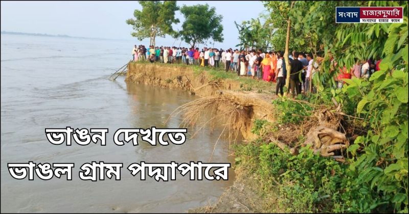 দিন কয়েকের এই ভাঙনে পার লাগোয়া বেশ কিছু গাছ ভেঙে গিয়েছে। আর একটু এগিয়ে বিএসএফ চেক পয়েন্টের দিকে এগিয়ে গেলে নিচু জায়গায় পদ্মার পার মিশে গিয়েছে জমির সঙ্গে। আতঙ্কিত জিয়াউল বললেন, “আরও জল বাড়লে এই দিকের আরও কয়েকশো বিঘে জমি জলের তলায় চলে যাবে।”