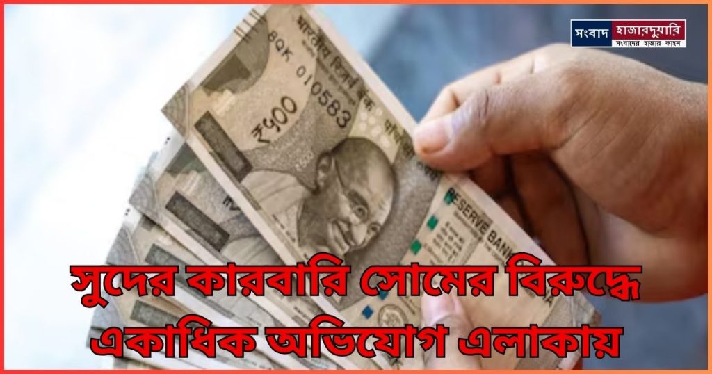 মুর্শিদাবাদ জেলাতে বিশেষ করে গ্রামীণ এলাকায় এই ধরনের কারবার বেশি চলছে বলে মত একাধিক মহলের। সাধারণত, এই নিয়ে অভিযোগ না এলে পুলিশের পক্ষ থেকেও ব্যবস্থা নেওয়া হয় না। বহরমপুরের কাশিমবাজারে একসময় বড় বড় ব্যবসায়ীরাও এই কারবারে যুক্ত ছিলেন। এখন সেই রমরমা কমলেও আড়ালে আবডালে এই কারবার চলছে বলে দাবি স্থানীয়দের। ঋণ গ্রহীতা কখনও চাপ দিয়ে অতিরিক্ত টাকা আদায়ের অভিযোগ করেন ঋণ দাতার বিরুদ্ধে। কখনও ঋনদাতা বলেন, অনেকেই সুদে টাকা ধার নিয়ে দিচ্ছি দেব করে কাটিয়ে দেয়। সুদ তো পাওয়াই যায় না। আসল ও মেলে না অনেক সময়।