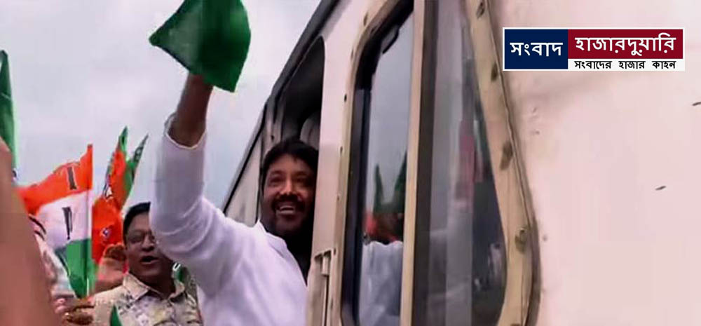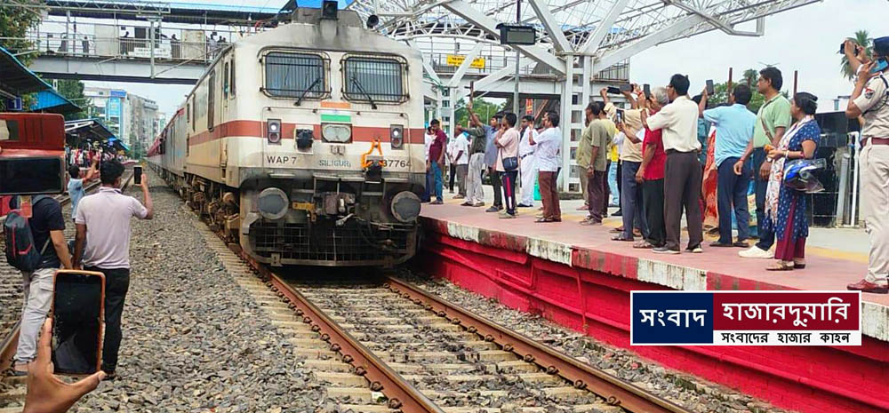 বিদ্যুৎ মৈত্রঃ ভারতের উত্তর-পূর্বের সঙ্গে পূবের বাংলা জুড়ে দিল কলকাতা-সাইরাং এক্সপ্রেস। পুজোর মরশুমে সেই খুশিতে আটখানা একাংশ মুর্শিদাবাদবাসী। বহরমপুর কোর্ট স্টেশনের চারপাশে বাজছে কাঁসর, বাজছে চরাম চরাম ঢাক। বিজেপি বিধায়ক সুব্রত ওরফে কাঞ্চন মৈত্রের অনুগামীদের মুখে শ্লোগান “মহান দেশের মহান নেতা নরেন্দ্র মোদি জিন্দাবাদ।”