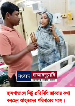 ঠিকাদার হাসান মল্লিক বাকিদের গত ছ’মাস আগে বেঙ্গালুরুতে রাজমিস্ত্রির কাজ করতে নিয়ে গিয়েছেন। মৃত্যুর সঙ্গে পাঞ্জা লড়ছেন হাসানও। হাসানের স্ত্রী ইতিমধ্যেই বেঙ্গালুরু পৌঁছে গিয়েছেন। তাঁদের দেখতে সিটু অনুমোদিত পশ্চিমবঙ্গ পরিযায়ী শ্রমিক ইউনিয়নের রাজ্য সম্পাদক আসাদুল্লা গায়েনের নির্দেশে হাসপাতালে গিয়েছিলেন পশ্চিমবঙ্গ রাজ্য কমিটির সদস্য ও মুর্শিদাবাদ জেলা কমিটির সদস্য আবদুর জাব্বার ও সংগঠনের নেতা সুমন দাস মহাপাত্র সহ বেঙ্গালুরুর সিটু নেতৃত্বরা।