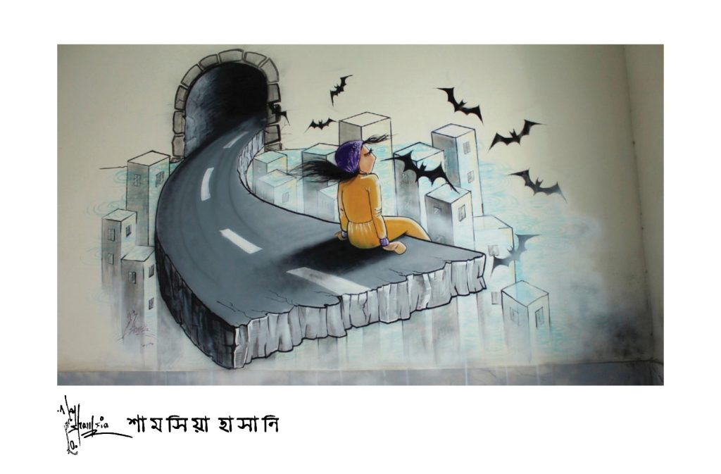 হাসানীর পিতা মাতা উদ্বাস্তু আফগান। তিনি কাবুলের মতো তালিবানি ডেরায় ‘রাস্তার শিল্পকে’ জনপ্রিয় করেছেন। এমনিতেই চিত্রশিল্প, সংগীত, নৃত্যের মতো কোনো শিল্পচর্চাকেই ইসলাম ভালো চোখে দেখে না। প্রতিমুহূর্তে শিল্পীর উপর নেমে আসে প্রাণনাশী ধর্মীয় ফতোয়া। মধ্যপ্রাচ্যের মতো কট্টর ইসলামিক মৌলবাদী দেশগুলির বুকে দাঁড়িয়ে একজন নারী চিত্রশিল্পীর নিরন্তর ছবি এঁকে যাওয়া— এ যেন ইসলামের প্রাতিষ্ঠানিক ভিতকেই সরাসরি নাড়িয়ে দেওয়ার সামিল। ফলস্বরূপ তাঁকে দেশ ছাড়তে বাধ্য করা হয়েছে। তাঁর প্রায় সমস্ত ছবিরই মুখ্য চরিত্র একজন বোরখা পরা নারী, যাকে শিল্পী বাস্তবের চাইতেও বড়ো করে দেখাতে চান। তাই তো তিনি সদর্পে ঘোষণা করতে পারেন— ‘আমি আফগানিস্তানকে তার শিল্পের জন্য বিখ্যাত করতে চাই, যুদ্ধের জন্য নয়।’