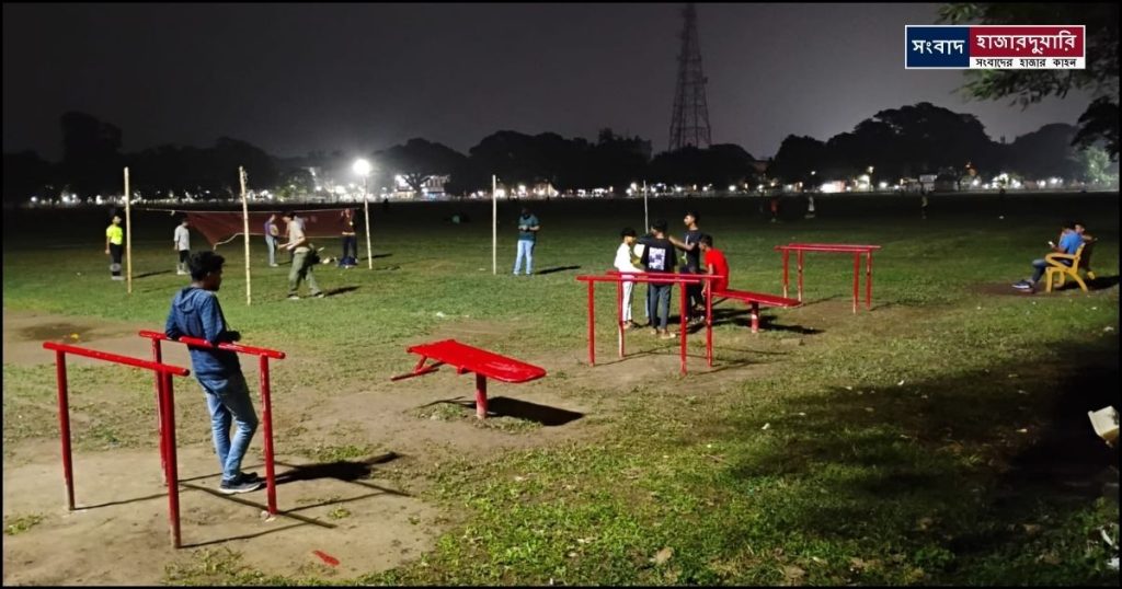 এই মাঠের চারপাশ মাঝেমধ্যেই ঘুরতে আসেন মৌমিতা মুখোপাধ্যায়। শনিবার সন্ধ্যায় হাঁটতে হাঁটতে বললেন, “শুধু কী তাই। জায়গায় জায়গায় আলোহীন বাতিস্তম্ভের দৌলতে সাপ-খোপের ভয় বর্ষা বাদলে এড়িয়ে গেলেও হোঁচট খাওয়া এড়াতে পারি না।” মহকুমাশাসক বললেন, ” আলোর বিষয়টা পুরসভাই দেখে।” নাড়ুগোপাল বললেন, ” ঝড় জলে দু-একটা খারাপ হয়েছে। ঠিক করে দেওয়া হবে।”