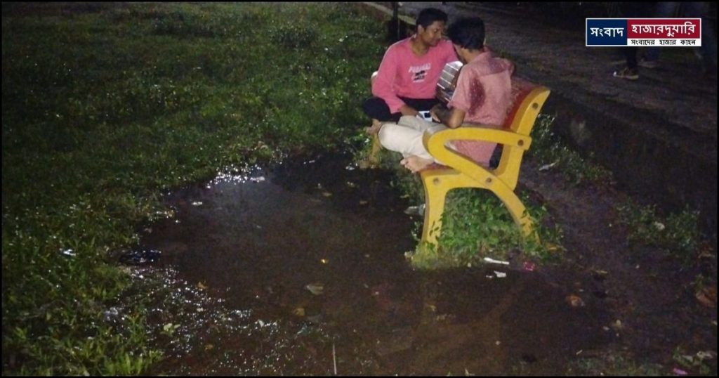 ঋতুর ক্যালেন্ডারে অনিয়মিত বর্ষা। প্রকৃতির খামখেয়ালে যে দু-চার বার একটু বেশি বৃষ্টিপাত হয় তখনই মাঠের বুকে জমে জল। জল পেয়ে বিনা বাধায় বেড়ে ওঠে আগাছাও। যেখানে যেখানে সকাল বিকেল হাওয়া বদলাতে আসা মানুষজনের জন্য আরামদায়ক বেঞ্চ বসানো হয়েছে, জল জমছে তার তলায়, চারপাশে। পরিবেশ হয়েছে অস্বাস্থ্যকর। ইদানিং শরীরচর্চার জন্য প্যারালাল বার সহ বেশ কয়েকটি সরঞ্জাম সেই মাঠের চারপাশে পাকাপাকিভাবে বসানো হয়েছে জেলা প্রশাসনের পক্ষ থেকে। মানুষজন তা ব্যবহারও করেন রোজ, তিন বেলা। সকাল, বিকেল, সন্ধ্যা। কিন্তু জমা জলে ক্ষুব্ধ তাঁরা।