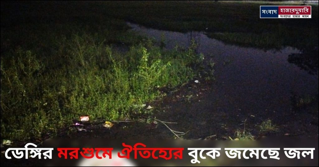 বিদ্যুৎ মৈত্র, বহরমপুরঃ কোথাও জল জমতে দেবেন না। জমা জল থাকলে তা সরিয়ে দিন। এমনকি প্রয়োজনের জলও জমিয়ে রাখবেন না। মনে রাখবেন জমা জলেই মশারা বংশে বাড়ে। ডেঙ্গির প্রকোপ কমাতে এই নিদান দিচ্ছে বহরমপুর পুরসভা। দু-পাশ ফেস্টুনে ঢেকে শহরের অলিগলি ঘুরে সেই বার্তা প্রচার করছে টোটো। এদিকে ‘ডানা’র সৌজন্যে দিন দুয়েকের বিক্ষিপ্ত বৃষ্টিতে শহর বহরমপুরের গর্বের ব্যারাকস্কোয়ারে জমে আছে জল। শুকোচ্ছে না পরপর দু’দিনের রোদেও। ডেঙ্গির ভরা মরশুমে স্বাস্থ্য সচেতন মানুষজন প্রশ্ন করছেন “এর বেলা?”