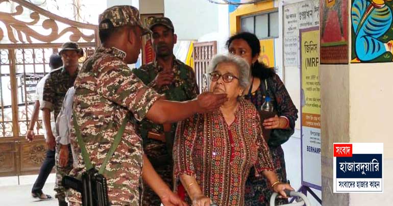 সংবাদ হাজারদুয়ারি ওয়েবডেস্কঃ নাজেহাল গরম উপেক্ষা করে মানুষ দাঁড়িয়েছিলেন ভোটের লাইনে। সেই গরমে বহরমপুর বিধানসভার অন্তর্গত অযোধ্যানগরের একটি বুথে হঠাৎই অসুস্থ হয়ে পড়েন এক মহিলা। তাঁকে সাহায্য করতে এগিয়ে আসনে কেন্দ্রীয় বাহিনীর এক পুরুষ জওয়ান। যা আরও বিব্রত করে তোলে ওই মহিলাকে। পরে পরিবারের লোকজন তাঁকে ধরে ছায়ায় নিয়ে যান। সেখানেই তাঁরা মহিলা পুলিশ কর্মীর খোঁজ করেন। কিন্তু বুথে না কেন্দ্রীয় বাহিনীর, না রাজ্যের কোনও মহিলা পুলিশ কর্মী ছিলেন সেখানে।